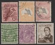 1913-65 Used collection in older style Seven Seas illustrated album with Kangaroos (30) inc 1st wmk to 1/-, 2nd wmk 2d, 6d, 1/-, 3rd wmk to 2/-, SM to 2/- & CofA wmk to 5/- inc 6d opt OS. KGV (68) with single wmk to 1/4 inc 1d red Die II, 1d Die III, 4d lemon & 1/4 turquoise, LM wmk set of 5, SM wmk to 1/4 inc perf 14, 2d brown, 4d olive, CofA wmk set to 1/4 & all opts to 5d brown G-FU. 1914 Kookaburra 6d Engraved. 1931 Kingsford Smith set to 6d Airmail, 1934 VIC Centenary sets to 1/- both perfs & Macarthur set to 9d. 1937 KGVI 5/-, 10/- & £1 Robes, 1949 Arms 1961 Pics to Cattle 5/- white paper, Navigators to 10/- & all high val Commem sets. Some sl mixed condition, solid G-F/VFU. ACSC cat $1800. (360) |