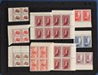 1913-65 collection/accumulation of mainly pre-decimal imprint/plate blks in hagner binder. But also NWPI Kangaroos 2d to 5/- & KGV ½d-4d violet 5th setting inc KGV 2d orange & scarlet perf OS, also hagner of mainly Kangaroos Used on piece inc 2d, 6d & 1/- 1st wmk with scarce pmk English Mail Out 18 JE 13, 5/- 3rd wmk on piece, 1929 1½d Swan plate numbers 1-12 singles, also pr with 're-entry to neck & TR', others inc 1931 Airmail 6d grey-brown imprint strip of 3 & comp set of plate number blks of 4 of 2d scarlet Cable (16 - upper left & right, lower left & right), various duplicated later imprint blks (250+) of 4, diff positions inc 1940 AIF to 3d, 1937-47 Definitives to 1/K, 1945 Gloucester Visit, 1946 Mitchell, 1947 Newcastle etc, duplicated singles inc 1959-66 Definitives to 3/- & 1964 Birds to 3/-, mostly 5 of each & Commems inc 2/- (25) & 2/3 (20+). Many of the imprint blks have potential varieties, these have not been checked. Mostly F-VF MUH/MLH, few F-VFU. ACSC cat $5000+. Rare to find pre-decimal imprint blk quantities. (1000+) |