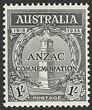 1935 ANZAC 1/- Black comb perf 13½x12½, instead of line perf 11. Superb fresh MUH, pristine never hinged original gum. ACSC 165PP cat $2500++. SG 155(p) cat £1600 for M, should be at least £3200 MUH. Very rare as only 1 sheet existed. 2025 Ceremuga AIEP photo cert. (P)