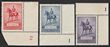 1935 KGV Silver Jubilee set plate no singles - 2d carmine-red plate 2 - LR, 3d blue plate 1 - LR, 2/- violet plate 1 - UR. Fresh VF MLH. ACSC 156-168z cat $200 for singles. Scarce. (3)