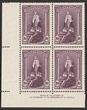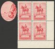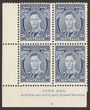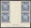 1937 NSW Sesquicentennial 9d purple, Ash imprint blk of 4 with variety 'roller shift to right frame, top frame over AU & 88'. Stamps fresh VF MUH, minor tones in margin. SG 195(var). ACSC 177zb cat $500. (4) (P)