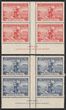 1938-49 KGVI Robes 10/- deep purple & £1 dull blue thin paper inter pane all blks of 4. VF 177a, 178a cat £560. ACSC 215, 217 cat $940. (8). (P)