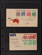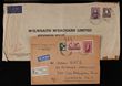 1938 KGVI Robes 10/- thin paper (flts) on Airmail cover franked with 2/- Aboriginal Art paying 3½-4oz rate, to UK. Apparently the earliest known Commercial use. We have only been able to trace one other cover plus a part cover & several Parcel Pieces offered at auction in recent years. Also 5/- thin paper on 1953 registered stamp dealer cover to UK. SG 177a, ACSC 215 cat $3000 for such franking. (2)