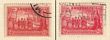 1937 NSW Sesqui 2d Scarlet variety 'Pantaloon flaw' with normal for comparison, with notes & photos of flaw. FU. SG 193(var). ACSC 175f cat $200. (2).