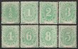 1902 Blank Base set ½d to 5/- green, wmk Crown NSW, perf 11½-12. VF fresh M/MLH, with bright colours. Scott J1-J8 cat US$583. SG D1-D8 cat £650. Unusually nice set. (8) (P) |