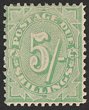 1908-09 New Design 5/- dull green, perf 11½-12x11. F-VFM. SG D62 cat £525. ACSC D59 cat $400. (P) |