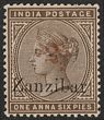 1895-96 'Zanzibar' opt QV India 12a-5R inc both 1R. VFU with 'Zanzibar 11 SE 96' cds. Scott 11-16 cat US$562. SG 16-21 cat £614. (6) (P)