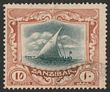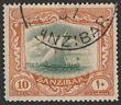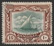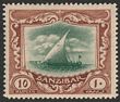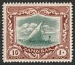 1936 Dhow 10S green & brown, wmk script. VFU, Zanzibar cds. Scott 213 cat US$33, SG 322 cat £45.