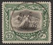 1921-29 Dhow 20R black & green, wmk script. Superb U, 'Zanzibar Reg JL 23 33' cds. Scott 176 cat US$850, SG 296 cat £850. Rare genuine postally used. (P)