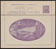 Lettercard: 1911 KGV Fullface 1d + 1d red-violet double reply, views Town Hall Sydney & Phantom Falls, plus Zoo Adelaide/Albert Bridge. F-VF UN, reverse suntan lines, inside views fresh. ACSC LC13(133/100A) & LC13(142B/3A) cat $400. (2). |