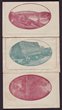 Lettercard: 1911-12 KGV Fullface 1d on greyish/greenish stock max 0.22mm thick, views Blue Lake in green, Viaduct in blue & On the Murray bright rose-red. View sides mostly superb fresh UN, all with varying degree of uneven suntanning. ACSC L10(12, 136A & 94A) cat $600. (3). |