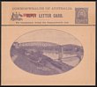 Lettercard: 1911-12 KGV Fullface 1d pale grey 1st line ends 'any on thin cream stock, view Sydney Harbour, variety mis-cut so text side printing at an angle. Fresh UN, trimmed at base. ACSC LC3(128A) cat $300. |
