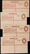 Postal Stationery - Postcards: 1911-54 unused with 1911 KGV 'the left half?', 1918 surch 1½d on 1d red, 1920 1½d brown w/o footnote, 1923 same opt 1d on 1½d, 1924 1d green, 1925 1d green die 3, 1930 1½d brown, 1938 KGVI 1½d, 1953 QEII 3d die 2, & 4d/3d green. Generally F-VF UN. ACSC cat $1000. (10). |