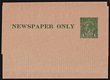 Wrapper - PTPO: 1924-38 KGV 1d green Die 3 on dark buff stock, w/o 'Newspaper Wrapper'. Superb U, 'Sydney FE 21 1927' pmk. ACSC WS13 cat $200. |
