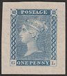 1849 QV 1d blue, engraved essay by Carmichael, with the background & frame of the design showing the intricate engraving so used on the Sydney View 2d plate I. Superb UN as made, 4 margins. Very rare & attractive essay modelled on the GB 1840 Penny Black. (P) |