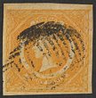 1854-59 QV Diadem 8d golden-yellow, imperf, wmk '8'. Superb U, 4 large margins, barred oval Sydney pmk. Scott 30a cat US$1575. SG 97 cat £1600. Rare genuine imperf. 2024 Ceremuga AIEP photo cert. (P) |