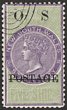 1894-1904 'POSTAGE' opt QV 10/- violet & claret Stamp Duty, perf 12. VF fresh MLH. Scott 76 cat US$350. SG 275 cat £350. (P) |