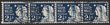 1899 QV ½d blue-green strip of 4, each h/s 'ULTRAMAR in blue' plus 2 NSW within concentric ovals. VF CTO with full MUH gum. SG 298(S). Rare UPU specimen & probably unique multiple. (P) |