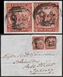 1852 Folded letter (reduced) franked QV Laureate 1d carmine vert pair (4 full margins) tied by Sydney barred oval. With boxed 'COOKS RIVER' sub-office, this the earliest recorded date for that h/s, 'SYDNEY NEW SOUTH WALES FE 13 1852' & 'WEST MAITLAND' b/s. SG 45 cat £340+ as loose stamps alone & 'from x2' on cover. (P) |