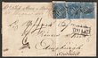 1858-60 frankings of Diadem 2d blue with 1858 Letter wrapper tied by 'Sydney SP 13 1858' duplex pmk (White D2 earliest date 3.11.58). 1859 cover 2d blue tied by rays numeral '64' of Maitland. To Tamworth with boxed 'Advertised Unclaimed' b/s Sydney, West Maitland & Tamworth 1860 cover 2d blue strip of 3 with indistinct rays numeral '170' of 'Ten Mile Creek' To Scotland with Tarcutta cds, b/s Ten Mile Creek, Gundagai, Sydney Paisley & Johnstone. SG 112 etc. (3). |