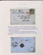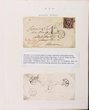 1855-59 covers etc franked QV Diadems with 1855 franked 6d slate-green (2 margins) tied barred numeral indistinct '111' with Tambaroora b/s plus Sofala & Sydney b/s. 1858 franked 6d greenish-grey 3 margins with NSW ovals pmk to Melbourne b/s 'Sydney JU 15 1858 & 'Ship Letter FREE GPO Victoria red cds. 1859 franked 6d grey (4 margins), numeral '140' of Moorna to England with b/s inc Gundagai, Wagga Wagga, Sydney & Bristol. 1859 part letter franked 6d deep slate (flts) with rays numeral '245' of Lang's Crossing Place to England, b/s inc Lang's Crossing Place, Wagga Wagga, Tarcutta, Gundagai & Sydney, plus Fareham arrival. 1856 large piece with 6d bluish-grey (4 margins) with Australian Packet Paid Liverpool in red. 1859 cover franked 6d grey tied rays numeral '66' of Singleton to Dublin with blue arrival cds. Plus 1d orange red (4 margins) tied by Sydney pie crust pmk. SG 66, 89, 91, 92, 94, 109 cat £300+ as loose stamps alone & 'from x2' on cover. (7). |