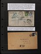 1900s Postage Due covers with 1907 franked NSW QV 2d blue tied by 1235 'Cudgen SP 19 1904' pmk with boxed Due cachet 'DEFT 2D FINE 2D 4D', blank base 2d pr perf 11½-12 plus design comp 1/- pr perf 11½-12, all tied by Hobart cds, the extra 2/- apparently to pay bulk postage due on a bundle of covers ACSC cat £585+ for such use. 1905 covers (2) from same sender & franked 2½d, both to NSW & redirected, both with hexagonal 'T 25' & '5D' h/s, ea with 1d blks of 5 perf 11½-12x11 m/s cancels (cat $240). 1903 to Tasmania with blank base 4d (cat $100). Also foreign Dues inc 1900 PPC from NSW with French 10c Due another with USA 2c Due, 2 other PPC British or USA Due markings, & a cover to USA with Due h/s. ACSC cat $925+ for the 4 with Australian Dues alone. Interesting lot. (9). |