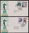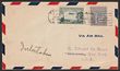 1954 Australia-Hawaii FFC franked Lyrebird 1/- & QEII 3d tied by Sydney 15 MY 54 cds. Also return flight franked US Bridge 25c tied by Honolulu May 17 1954 pmk. AAMC 1345b cat $100. (2).