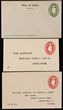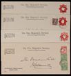 Envelopes - Official: 1913-20s group with Kangaroo 1d red OS dots in Die, type 3, uprated KGV ½d OS perfin tied 'Lyonville 26 JL 19' cds. 1914-16 KGV 1d red type 1, uprated KGV ½d tied 'Melbourne 31 JL 19' cds. Victoria QV 1d OS die uprated KGV ½d OS perfin tied Hiawatha 19 AU 22? cds. Overall F-VFU. ACSC EO1C & EO4A cat $450, plus the Victoria. (3)