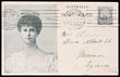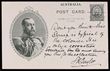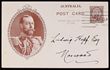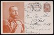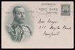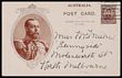Postcard: 1911 Coronation 1d brown King in oval oak leaf frame, portrait 50½mm, type 1, white reverse. VFU, part Victoria pmk. ACSC P9(1)A cat $75.