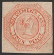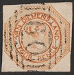 1853-54 QV Courier 4d orange, plate I, worn impression. VFU appearance, pinhole, 4 margins, barred oval pmk. Scott 2 cat US$550. SG 8 cat £450. (P) |
