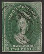 1855 QV Chalon 2d green, imperf, wmk Large Star. Superb U, 4 large margins, barred oval '60' pmk. Scott 5 cat US$500. SG 16 cat £450. Exceptional quality. 2024 Ceremuga AIEP photo cert. (P) |
