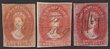 1857-67 QV Chalon 1d, 3 diff shades, imperf, wmk '1', all error printed DOUBLE, with one impression weaker but all clear. F-VF F/C, m/s date cancels, almost 4 margins. SG 25/29(var). Rare group. (3). (P) |