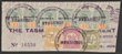 1900 'REVENUE' opt QV Tablet £1, (6 - 3 prs), plus 1904-08 Numeral Stamp Duty 1/-, 2/6 & 5/-, all on large piece, tied by 'Tasmanian Government Insurance 22 MAR 1928' Fiscal cancels. VF. Bft 28, 39, 40, 41 cat £130+. SG F39 cat £1350 for FU. Spectacular piece. (P) |