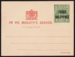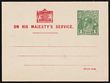 Postcard-Official: 1924-30 KGV 1d green perf OS in dots type 1, imprint date 8.25. ACSC PO5 cat $750. Very rare. (P)