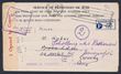 POW: ca1915 envelope with circular 'Prisoner of War Letter FREE' blue h/s at UR, 'Service des Prisonniers de Guerre' blue cachet & 'German Concentration Camps Liverpool' signature cachet in blue. From German prisoner in Liverpool Camp to Germany, original PPC with message enclosed. ASC X3.2d cat $200 in 1993. (P)