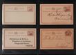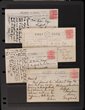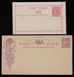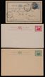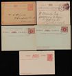 Western Australia - Postal Stationery: 1879-1912 range inc Postcards with 1879 1d brown on salmon (2 U, PSSA cat $80), 1d blue on thick stock (UN, 2 U, $80), 1892 1½d on 3d green (3 UN, $45), 1892 1d brown on white (2 UN, $80), 1903 1d blue thinner stock UN ($100) extra stamp removed & 1902 QV 1½d blue Double Reply (UN, $1000). Lettercards 1912 Surch 1d/2d blue (2 UN, $200). Envelope 1d red un $60. 3 others inc 1899 Land Titles dept Frank stamp envelope. Mostly F-VF. (18) |