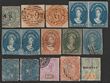 1850-1912 collection with NSW 1850 Sydney View 1d (2), 2d & 3d. 1851-55 QV Laureate 1d (4), 2d (5), 3d (4), 6d (4) & 8d. 1854-59 QV Diadem vals to 1/- imperf. 1860-72 QV Diadem vals to 1/- perf. 1856 QV Registered (6d) imperf (3) & 1860-63 perf (4) inc shades. Queensland 1882-95 QV large Chalon 5/- & £1. Victoria selection from 1858. Mixed condition but many G-VFU. SG cat £6000+ = A$12,000+. (130) (P) |