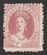 1880 QV Chalon 20/- rose, lithographed. F fresh MLH with nice original gum & unusually excellent colour. Scott 56 cat US$2600, SG 127 cat £2500. Very rare genuine mint as 99% of those offered are cleaned fiscals. Brandon photo cert. (P)