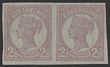 1895 QV 2½d pale reddish-purple horiz pr, imperf plate PROOF, blank background, 2 cnr numerals on bluish granite paper, no wmk. Superb UN as made, all 4 margins. SG 213(p). ACSC Q23(PP)1F cat $2000+. Very rare. (2) (P)