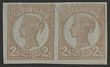 1895 QV 2½d light brown horiz pr, imperf plate PROOF, blank background, 2 cnr numerals on bluish granite paper, no wmk. Fresh UN as made, small thin, 4 large margins. SG 213(p). ACSC Q23(PP)1G cat $2000, plus premium for pr. Very rare. (P)