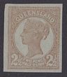 1895 QV 2½d pale brown, imperf plate PROOF, blank background, 2 cnr numerals, on bluish granite paper (with strong mesh), no wmk. VF fresh UN as made, 4 margins. SG 213(p), ACSC Q23(PP)1G cat $1000. Very rare. 2011 Ceremuga AIEP photo cert. (P)