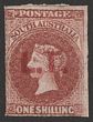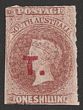 Treasury: 'T' red opt QV 1/- pale red-brown, rouletted, wmk large star (4R). VFM, original gum. Extremely rare. 2018 Ceremuga AIEP photo cert. (P)