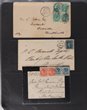 New South Wales: 1860s-1904 covers & Stationery inc 1860s QV 6d violet perf Diadems (7) to UK, NZ etc. 1876 (2) franked QV 6d mauve to Dublin, another to Glasgow, then QV range ½d, 1d, 2d, 2½d & 3d single or mixed frankings, then Postal Stationery (8), Postcards, PTPO envelopes, Lettercard, wrappers etc. Also Lyrebird 8d mauve 1908 to Germany & long OHMS envelope 1d Centenary OS in die Stationery. (27) |