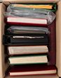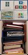 1890s-1970s World Collection/accumulation in 5 s/books & 13 small boxes house in 2 large cartons inc Germany, Great Britain, British Commonwealth, South America, Asia etc. Small boxes contain bundles by Country with interesting mixes noted Ceylon, Hong Kong etc. Stamp accessories inc 10 s/books, few Lighthouse quantity Hawid mounts, hanger cards. Most GU-VFU, few F MLH/MUH. S/books & accessories would retail $150+ & Decimal FV $100. (3000+). |