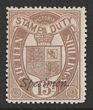 1884-96 Crown & Arms Stamp Duty 15/- purple brown, Postal Fiscal opt Specimen type 24b horiz in italics, wmk V crown (w33) sideways. VF fresh M. SG 273s, normal cat £2000 & unpriced as specimen. (P)
