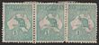 Postmark: 1918 1/- blue-green Kangaroo rejoined strip of 3 with light MOO Carlton OC 18 purple cds. Very rare pmk as only 1 other example known. G-FU. SG 40 (var). ACSC 32A(var). (P)
