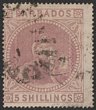 1873 QV 5/- dull rose Large Britannia, wmk small star perf 15½x15 FU, usual centring. SG 64 cat £300. BPA photo-cert. (P) |