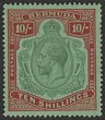 1924-32 KGV 10/- green & red/ deep emerald, wmk Mult Script. VF fresh MLH. Scott 96 cat US$160. SG 92g cat £150. (P) |