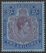 1938-53 KGVI 2/- deep reddish purple & ultramarine/ grey-blue, perf 14. VF fresh M. Scott 123 (var). SG 116a cat £325. (P) |