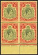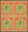 1938-53 KGVI 5/- green & red/ yellow, blk of 4 perf 14. Superb VF MUH, some perf separations. Scott 125a. SG 118 cat £600 plus premium for blk. BPA photo-cert. (P) |